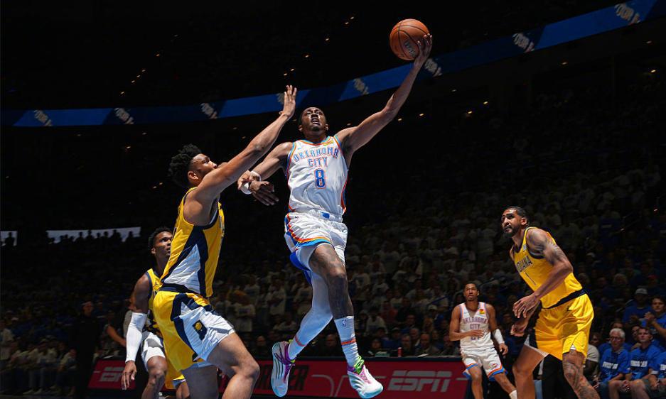 在经历东西部季后赛的苦战之后,俄克拉荷马城雷霆和印第安纳步行者从各自半区脱颖而出,尽管总决赛开打之前,外界更看好新科MVP亚历山大领军雷霆的争冠前景,但是前三场战罢,步行者却取得了大比分2-1的领先,危难之际亚历山大证明了自己,第四场末节独揽15分,率领雷霆客场逆转扳平大比分,关键的天王山之战,亚历山大又交出了31分、10次助攻和4记封盖攻防一体的表现,帮助雷霆3-2夺得赛点。