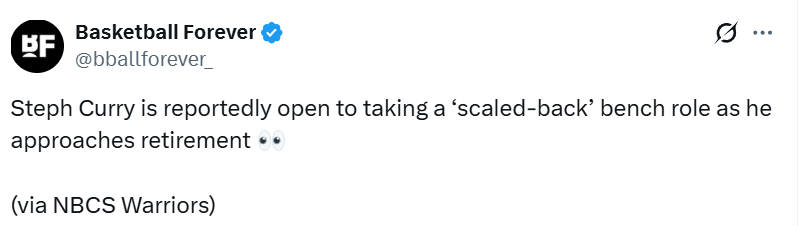 开云体育平台-库里未来愿改打替补!以角色球员身份继续发挥作用 盼留勇士退役