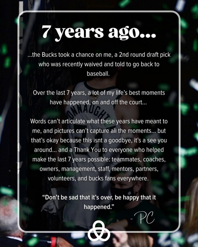 离开效力7个赛季的雄鹿,康诺顿也在社交媒体感慨了这段经历: